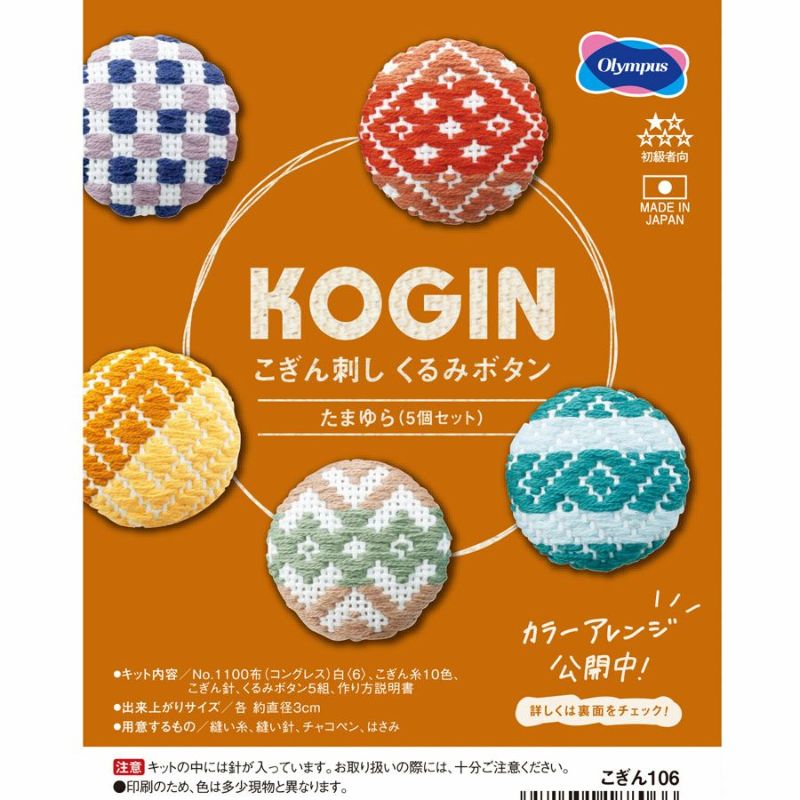 はじめてさんでも簡単! こぎん刺しキット・くるみボタン5個セット(まほろば)