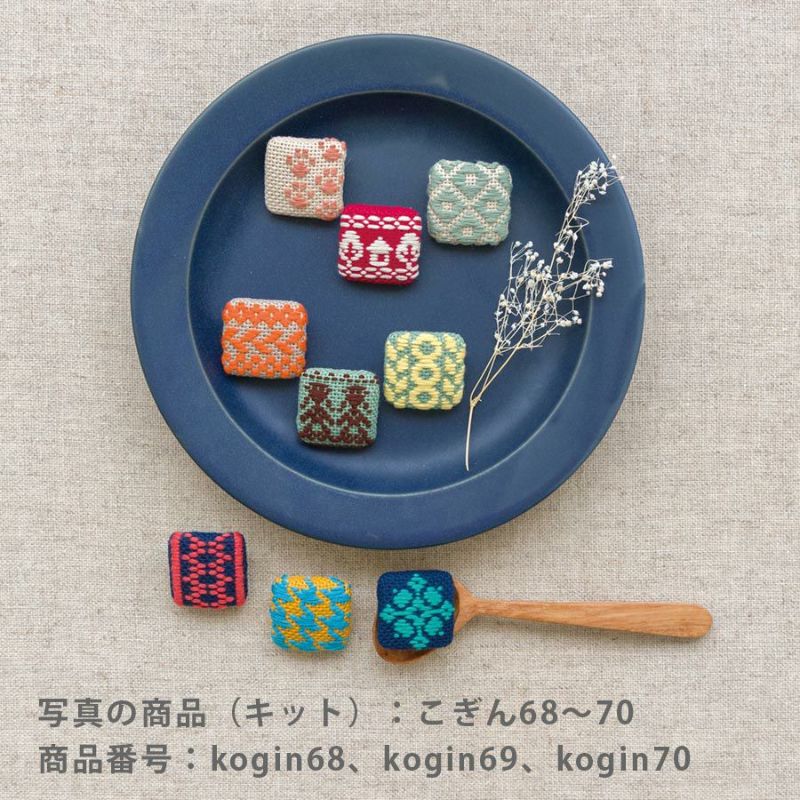 ●キット内容:こぎん糸(綿100%)、こぎん布/No.1100コングレス(綿100%)、くるみボタン(3組)、こぎん針、図案付説明書