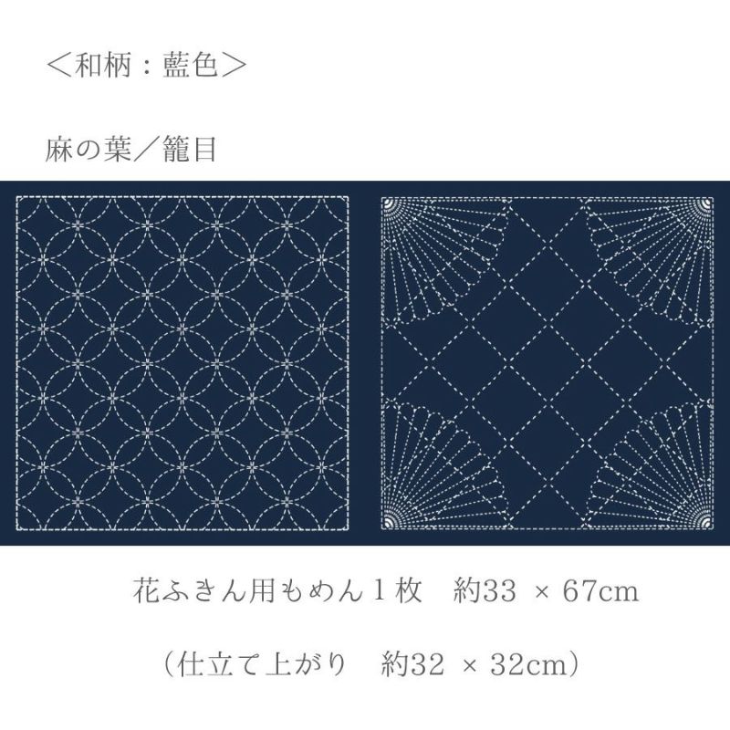 刺し子布 花ふきん (七宝/扇面) 藍色 刺子花布巾生地 紺色 七宝柄 クロフトプロダクツはなふきん