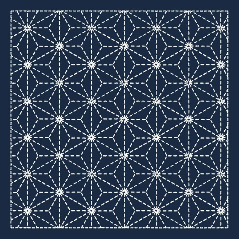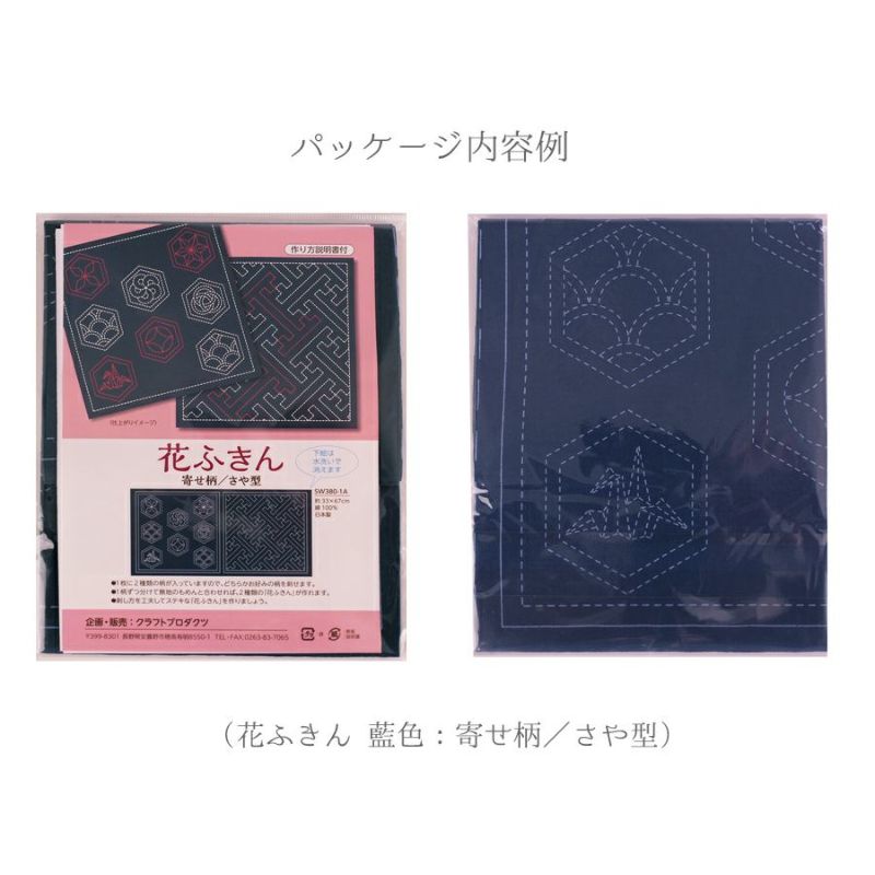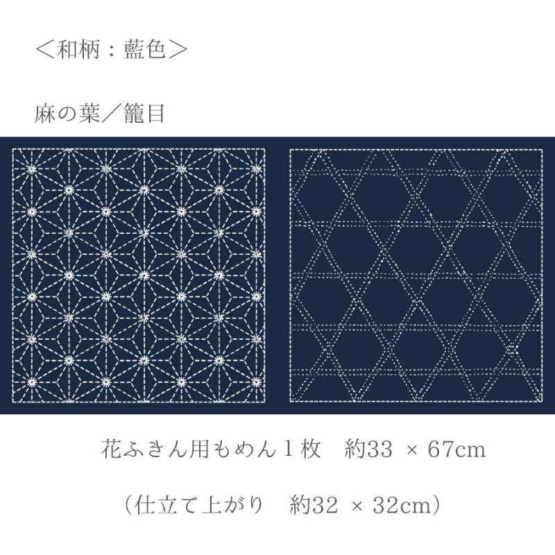 刺し子布 花ふきん (麻の葉/籠目) 藍色 簡単刺子図案プリント済み生地 さしこ花布巾クラフトプロダクツ
