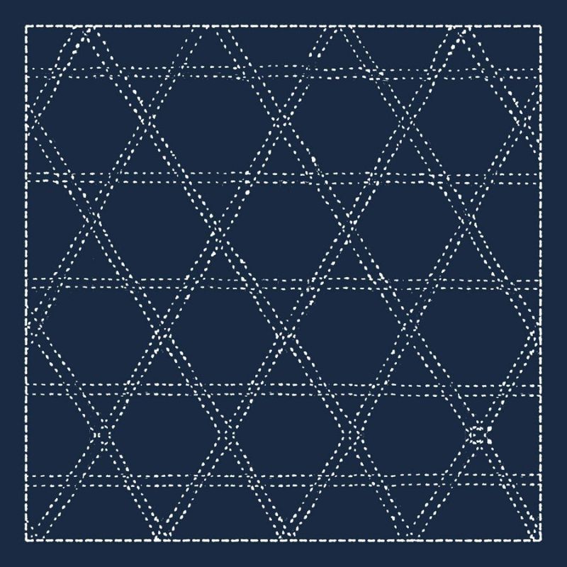 直線で刺しやすい 刺し子布 花ふきん (麻の葉/籠目) 藍色