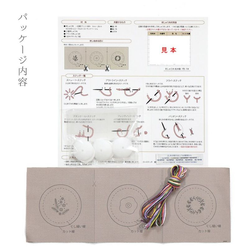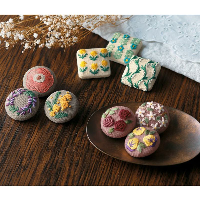 気軽に始めやすいフランス刺しゅう フランス刺しゅうキット 《GARDEN PARTY》くるみボタン(レベル3・3個入)