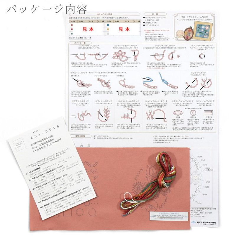 ●キット内容:フランス刺しゅう布(図案プリント済)、25番刺しゅう糸、フランス刺しゅう針、カラー図案付説明書