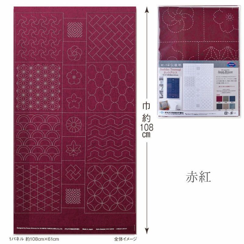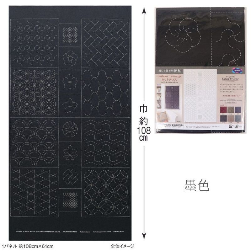 刺し子紬「伝統柄コレクション1」約108×61cm (洗うと消えるプリント)
