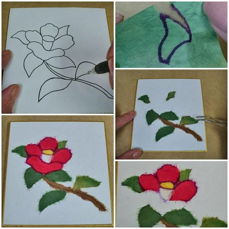 高齢者の方にも安全 和紙ちぎり絵キット・ミニ壁掛け「藤」