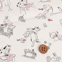 コットン生地 ねこのレストラン(アイボリー) 10cm単位 切り売り