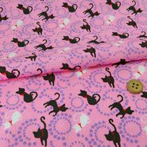 コットン生地 ミュシャ風ねこ柄(ピンク系) 10cm単位 切り売り