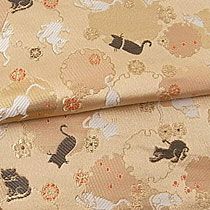 金らん・雪輪に猫(ゴールドベージュ) 10cm単位 切り売り
