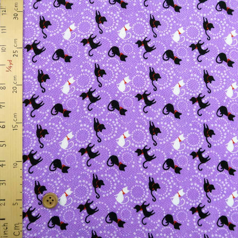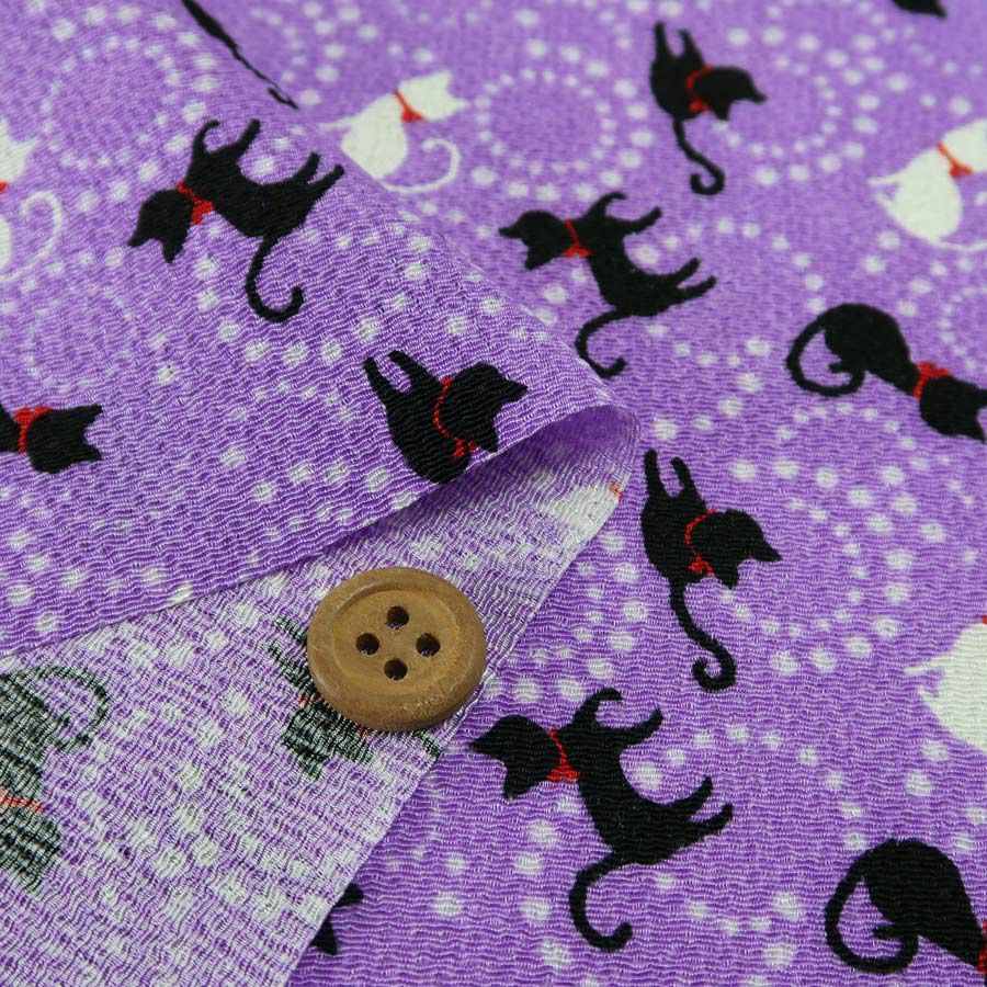 在庫限り/ちりめん生地 おしゃまなネコ(紫) 10cm単位 切り売り