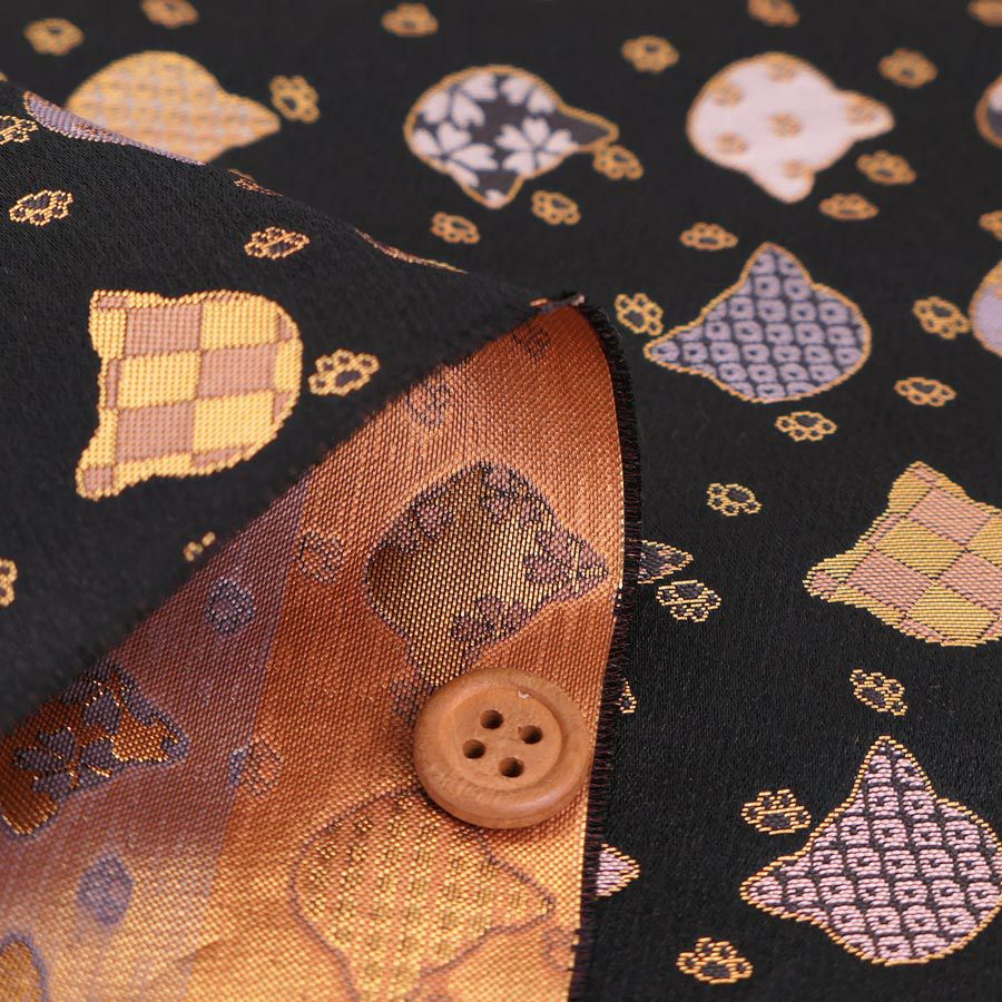 金襴生地(金らん) ねこ型に伝統柄(黒) 10cm単位 切り売り