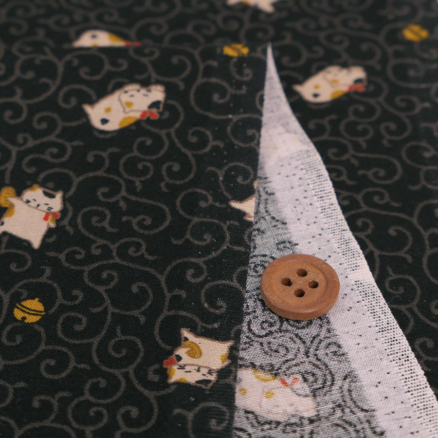 手染め和風コットン生地・匠 ねこあそび(黒) 段単位 切り売り