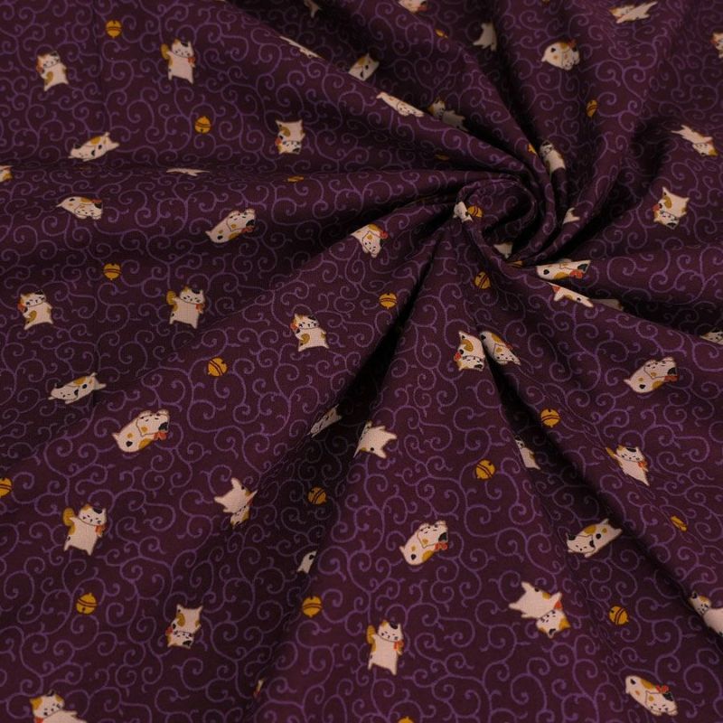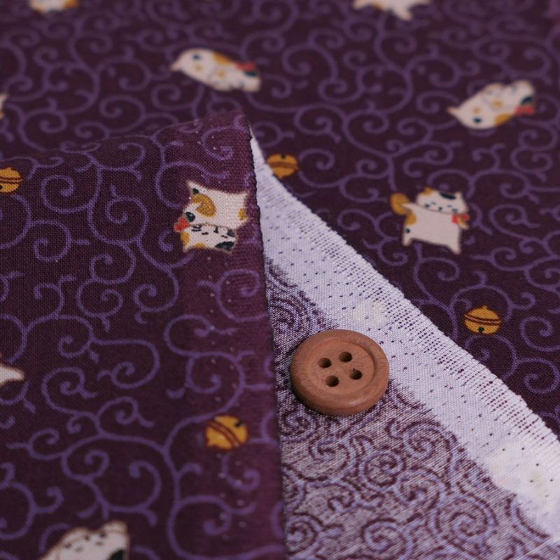 ねこ好きの方に☆和の猫柄24種! 手染め和風コットン生地・匠 ねこあそび(黒) 段単位 切り売り