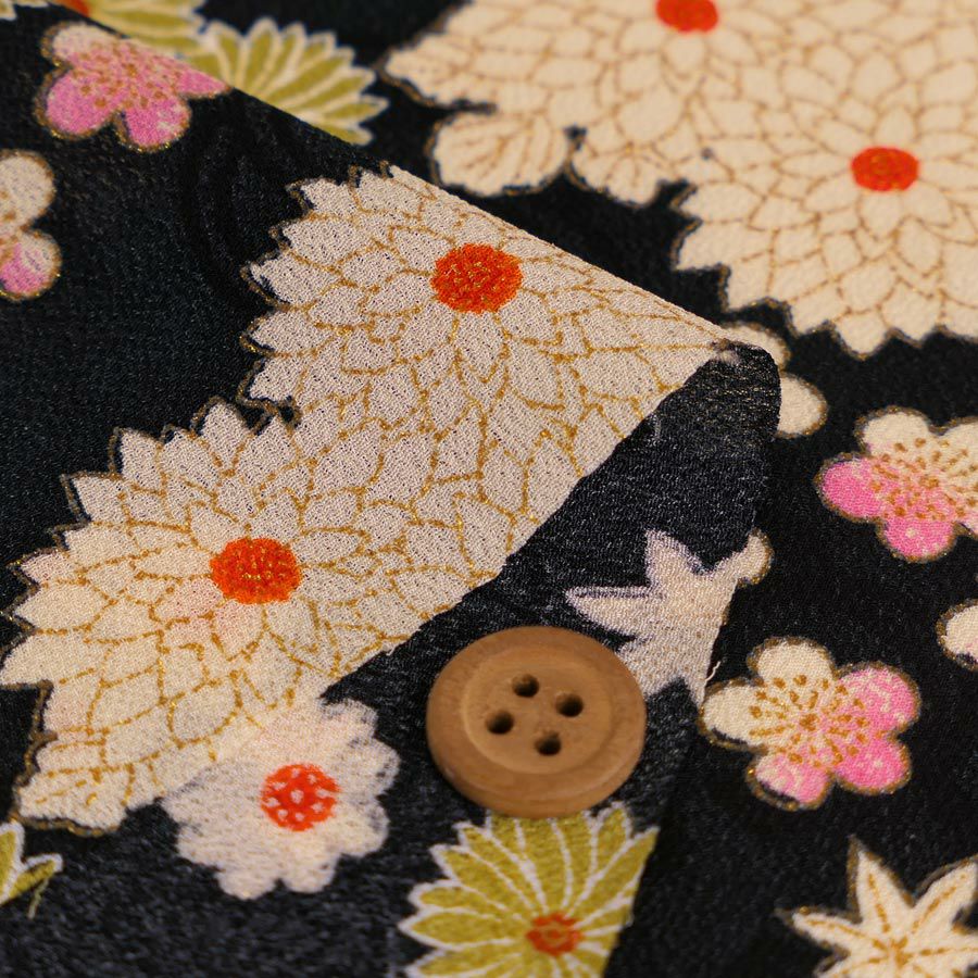 一越ちりめん生地 寄り添う小桜(黒) 10cm単位 切り売り