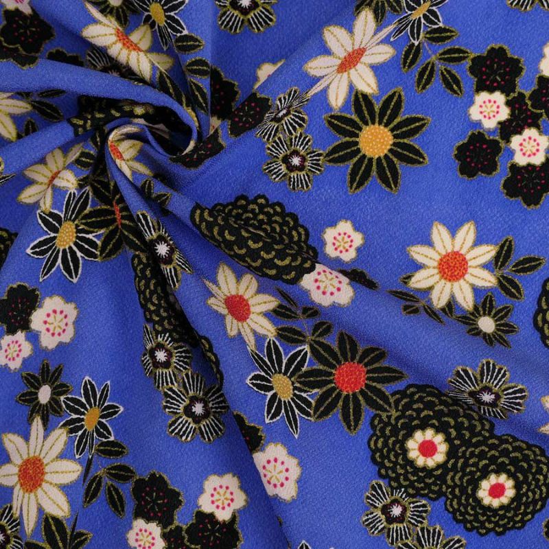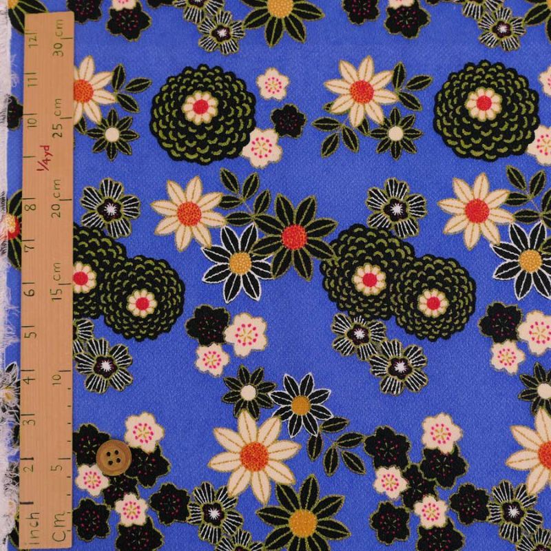 モダンな花柄のひとこし縮緬 一越ちりめん生地 モダン金彩和花柄(しぶ柿色) 10cm単位 切り売り