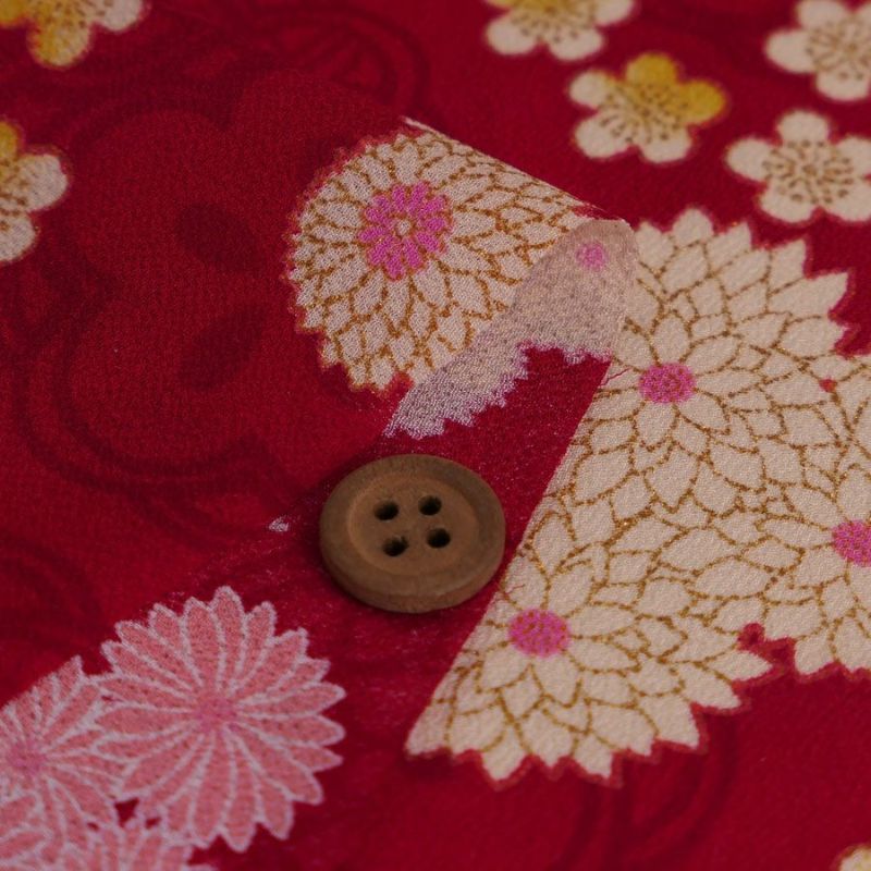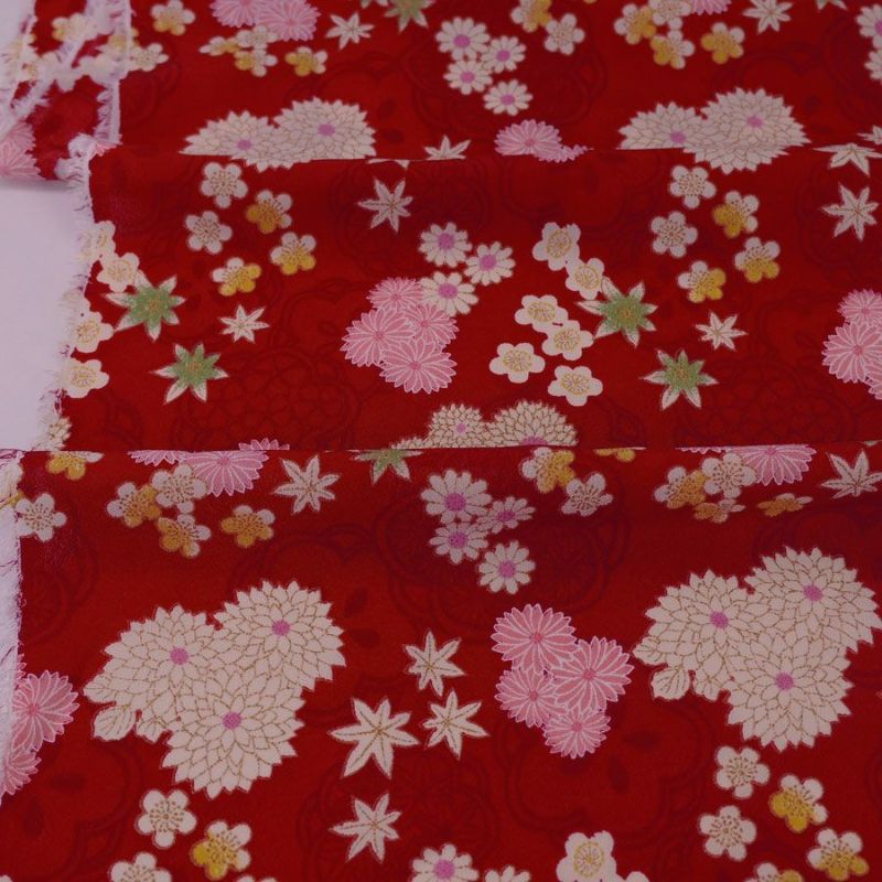 アンティーク柄の縮緬で手芸を 一越ちりめん生地 陰紋に春秋花(黒) 10cm単位 切り売り