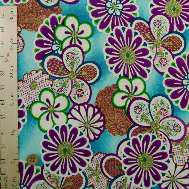 あざやかな青系花柄 一越ちりめん生地 菊と梅(ブルー) 10cm単位 切り売り