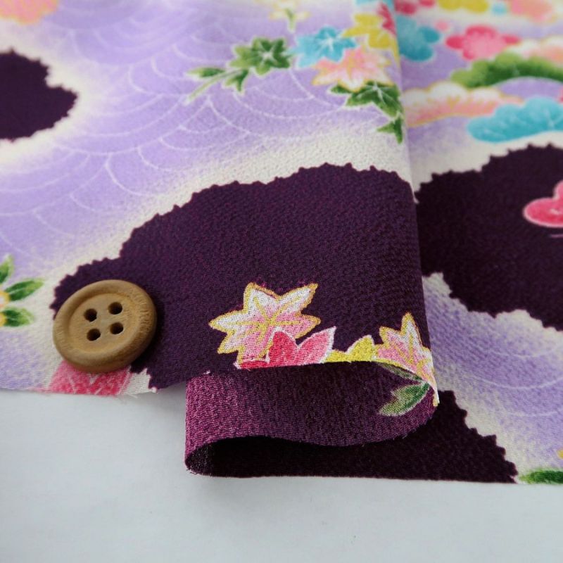 一越ちりめん生地 花御所車に手まり(紫)