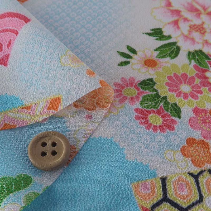 彩り鮮やかな古典柄。つまみ細工・ちりめん手芸に 一越ちりめん かのこ雲に百花扇柄(赤) 10cm単位 切り売り