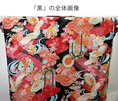 11年ぶりの復活! 一越ちりめん・貝桶に鶴(赤) 10cm単位 切り売り