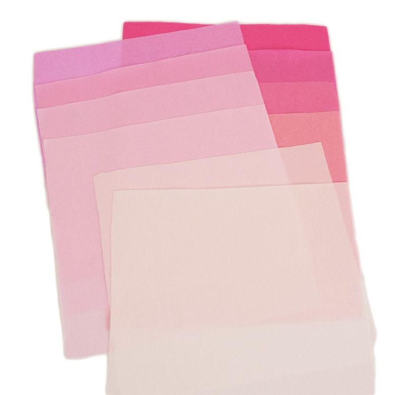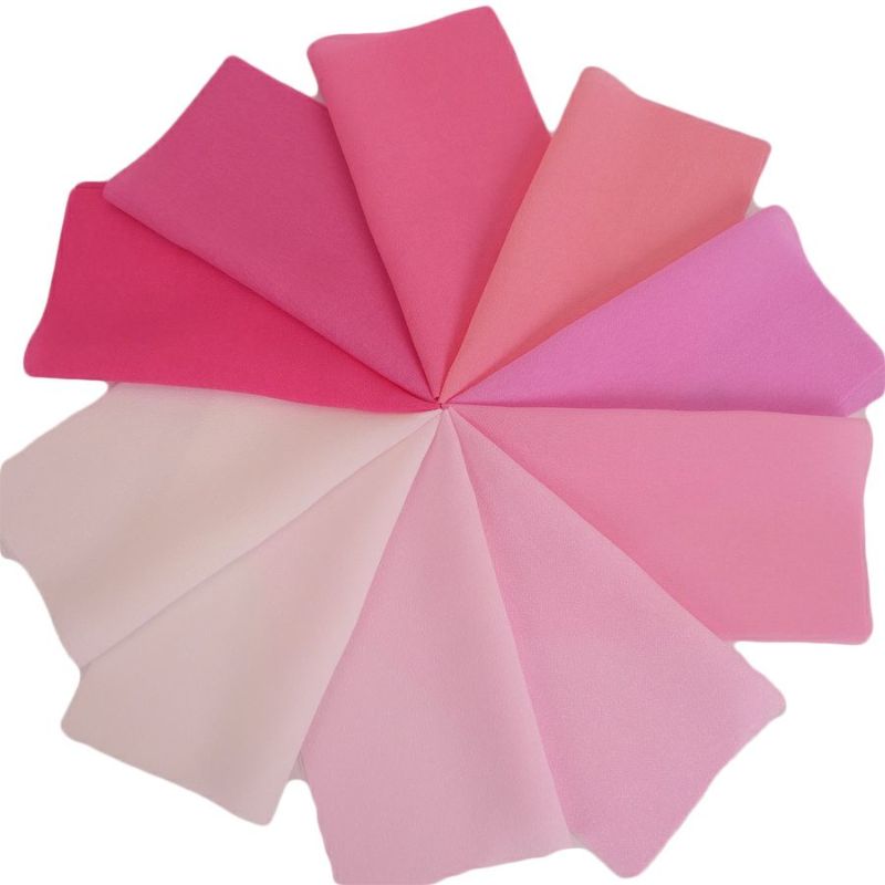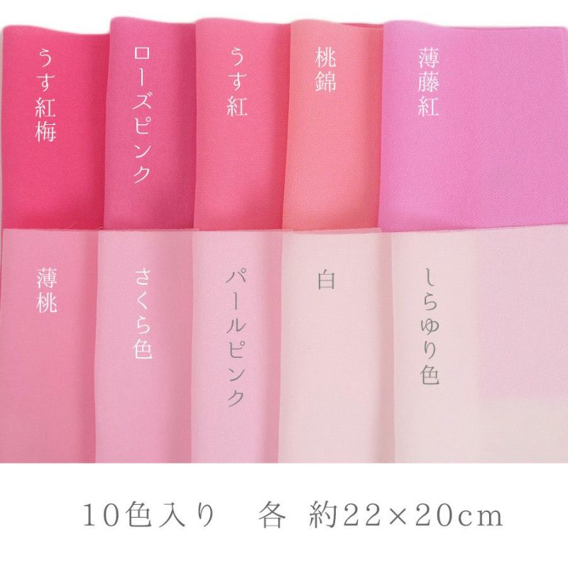 商品案内つまみ細工やちりめん手芸に便利!ピンク系8色と白系2色の無地一越ちりめんを10色セットで。