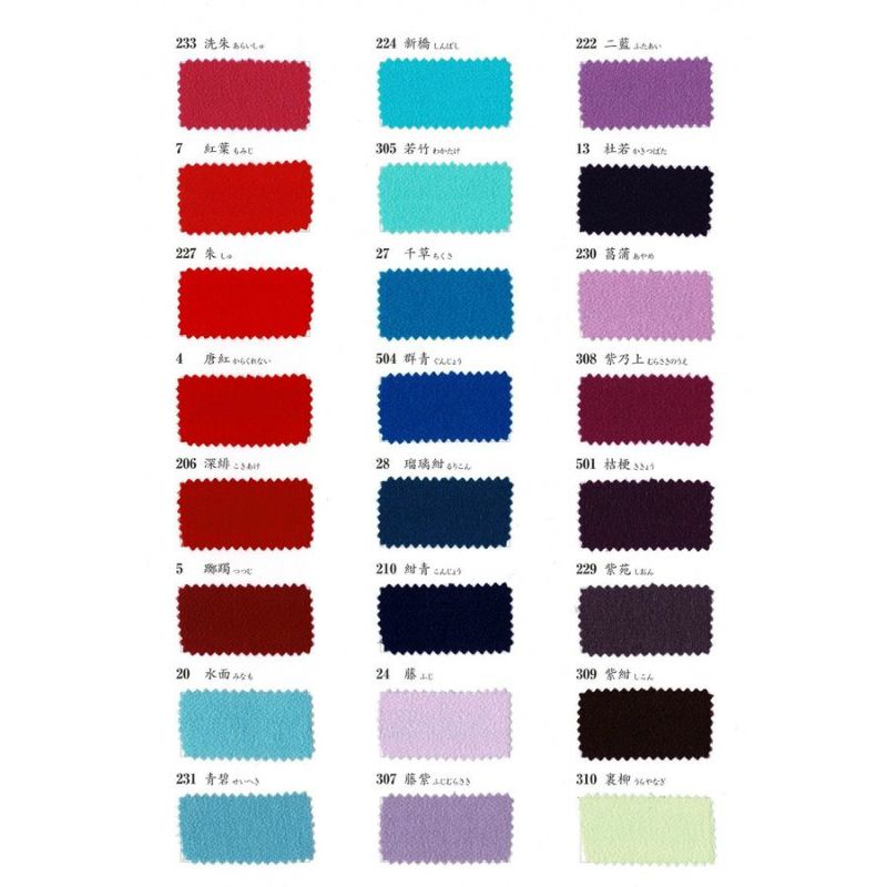 一覧で分かりやすいサンプル帳 西村ちりめん 無地一越ちりめん《61色》色見本帳