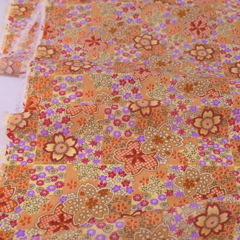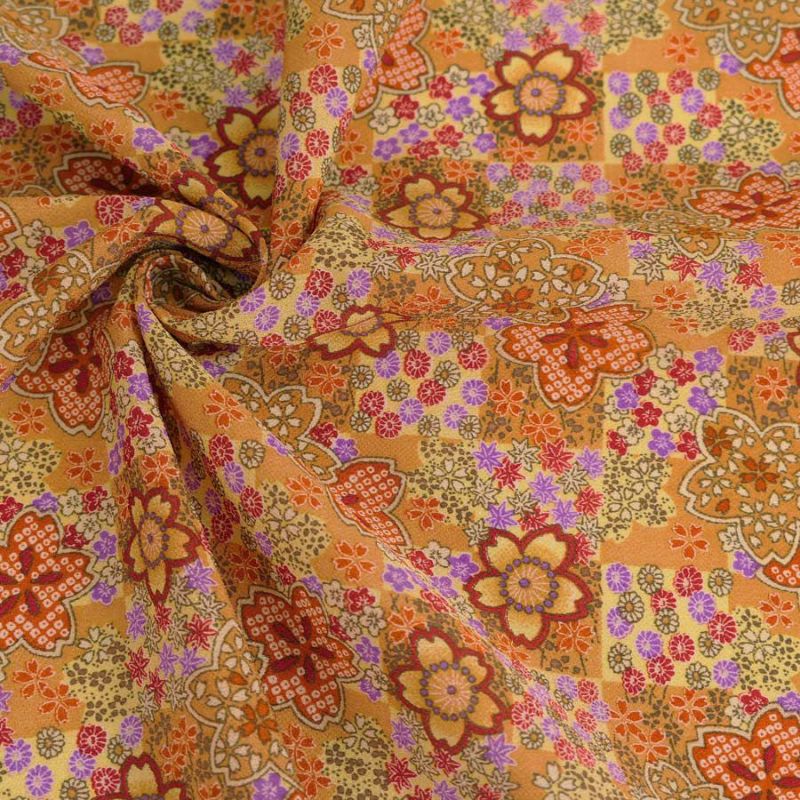 おとなっぽい可愛さが魅力的 一越ちりめん生地 市松に四季花(黒) 10cm単位 切り売り