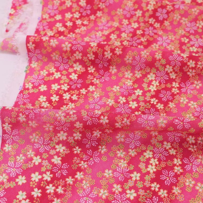 手づくりのちりめん小物に 一越ちりめん生地 はすぼかしに舞桜(ピンク) 10cm単位 切り売り