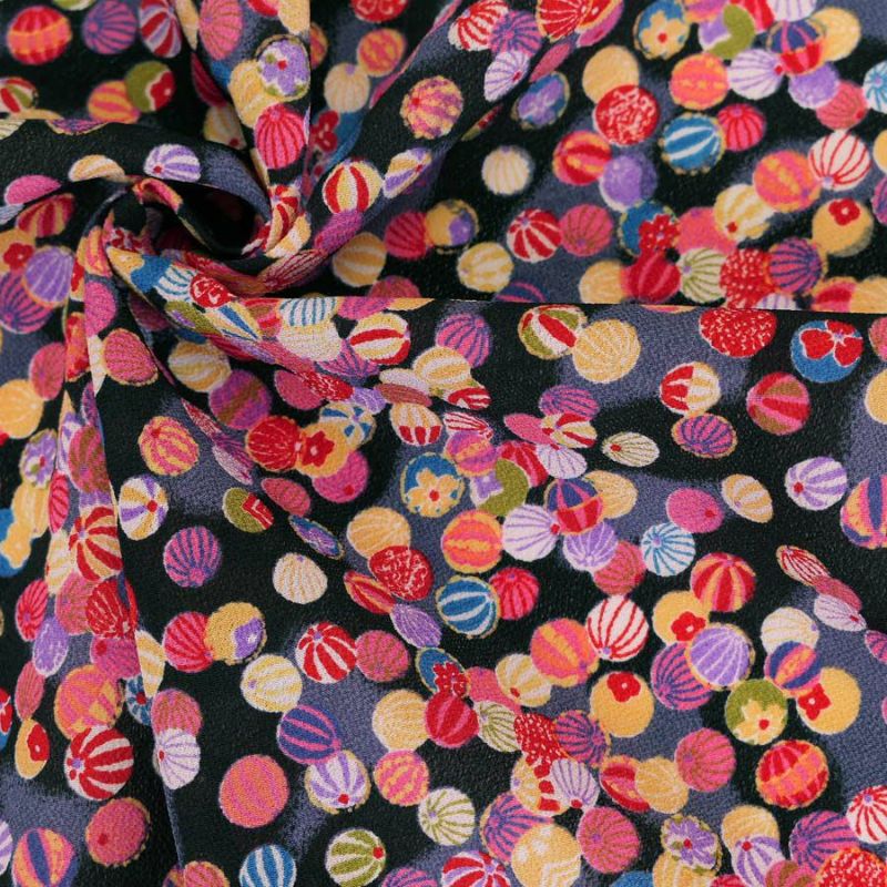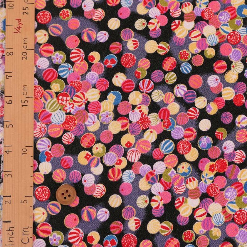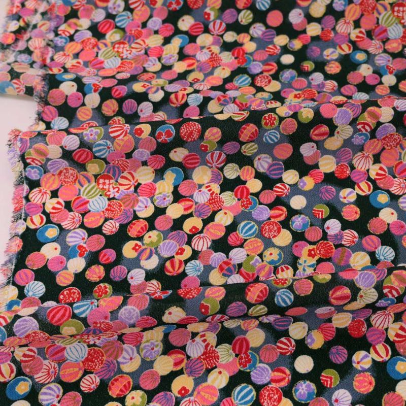 商品案内色・柄のきれいな小さなまりがぎっしり描かれた、かわいい柄のちりめん生地。