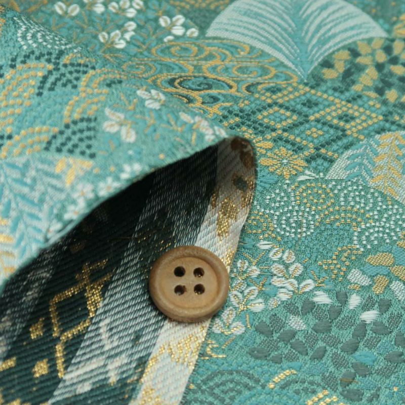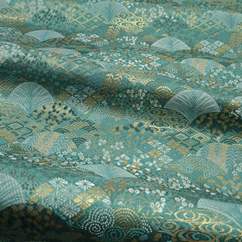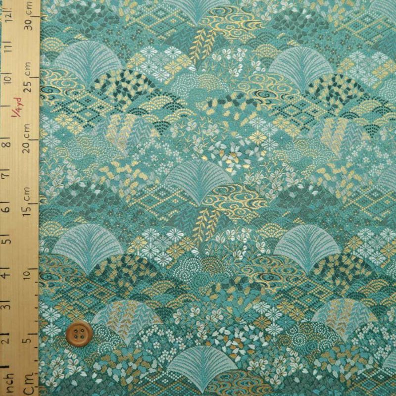 モダンでクールな西陣織物 金襴生地(金らん) 柄の青海波(青緑色) 10cm単位 切り売り