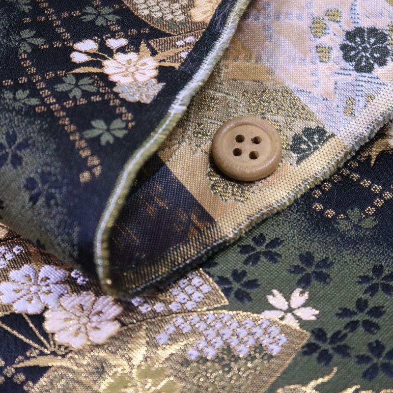 シックでモダンな伝統柄 金襴生地(金らん)斜取り扇面桜(黒/グレー) 10cm単位 切り売り