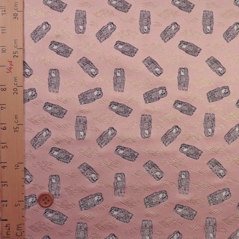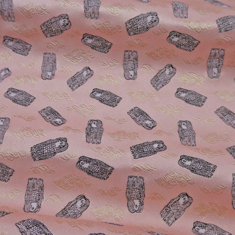 マスクケースやポーチに 在庫限り/金襴生地(金らん) アマビエ柄(薄紫) 10cm単位 切り売り