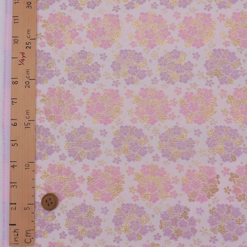 くすみ感のある可愛さがいい西陣おりもの 金襴生地(金らん) はなやぎ梅づくし(クリームベージュ) 10cm単位 切り売り