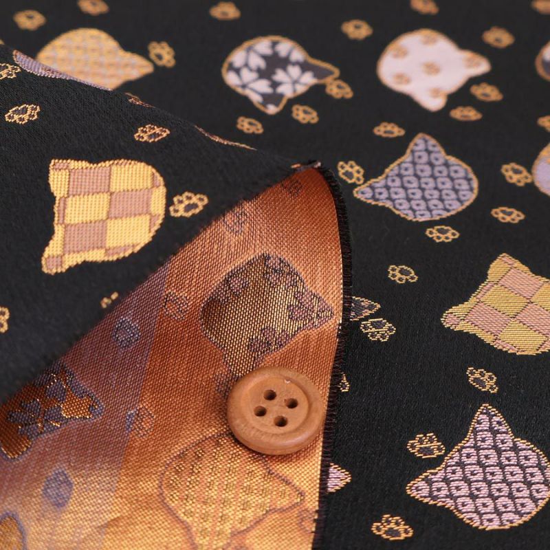 金襴生地(金らん) ねこ型に伝統柄(黒)