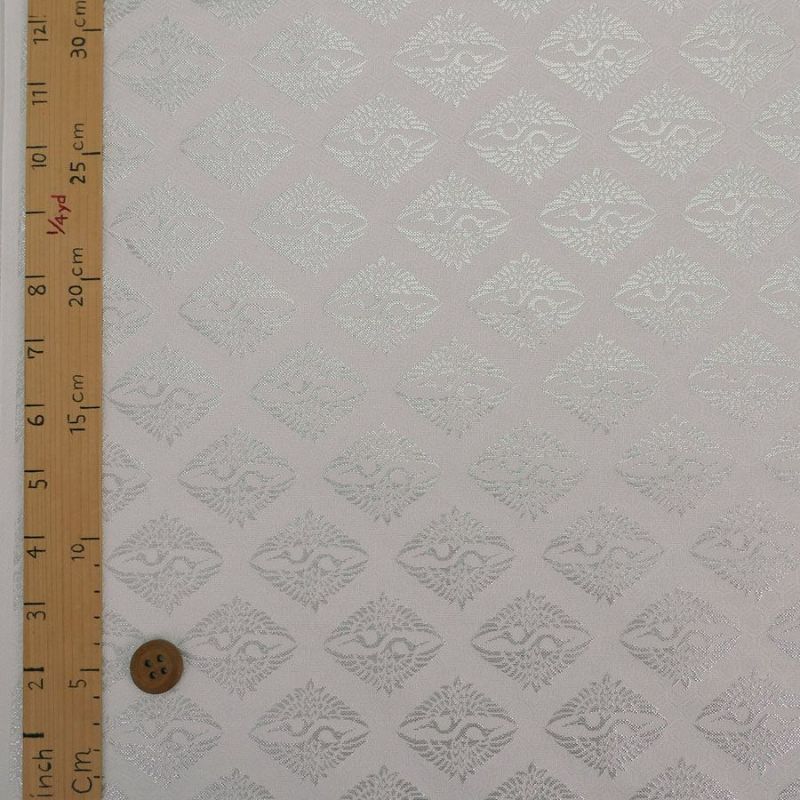 金襴生地(金らん) 向い鶴菱(白/銀)  七五三男の子袴 かっこいい西陣織 慶事小物衣装向き シルバー