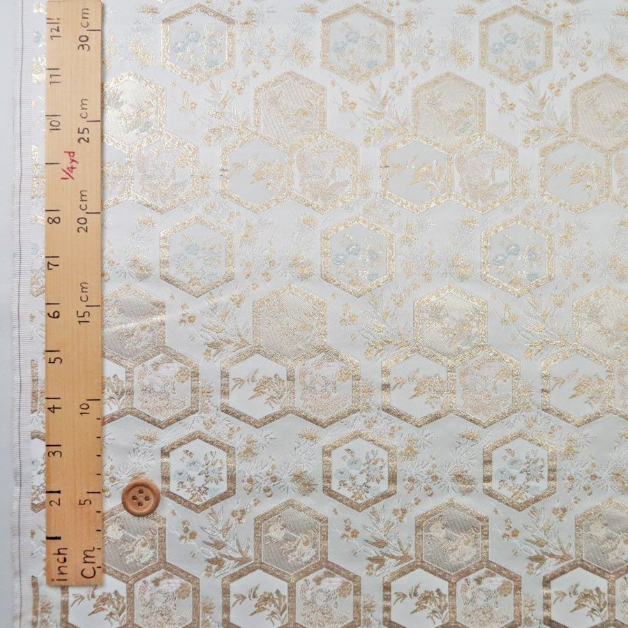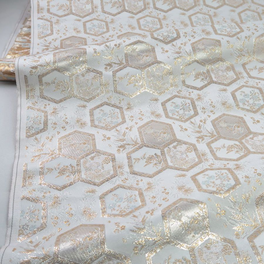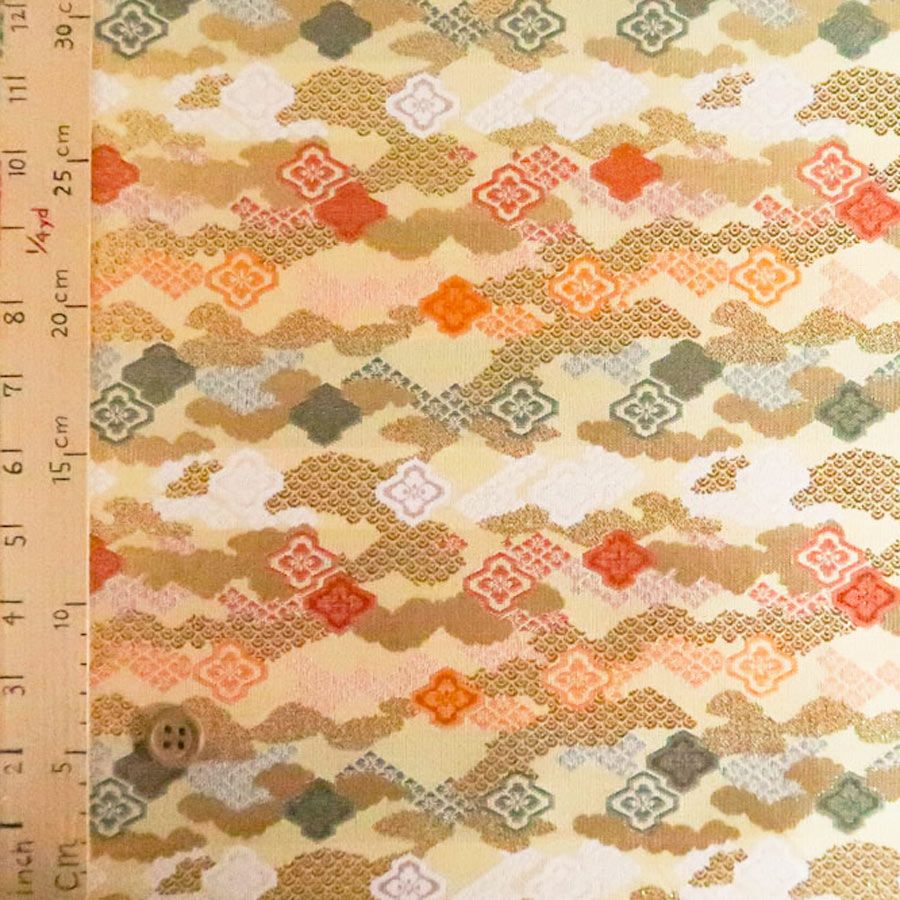 他の画像を見る 気取りのない古典柄。何にでも使ってみてください! 金襴生地(金らん)雲取りに飛び花菱柄(クリーム色) 10cm単位 切り売り 販売価格 ¥ 212 税込 在庫切れ 再入荷お知らせ お気に入りに登録する