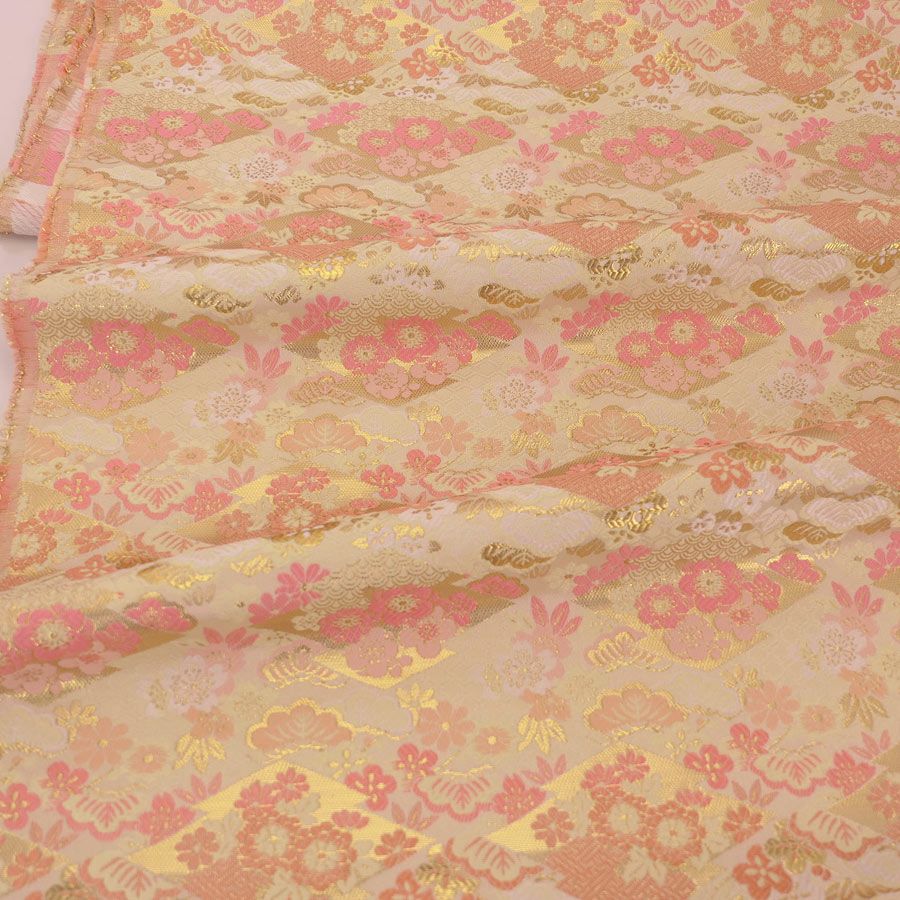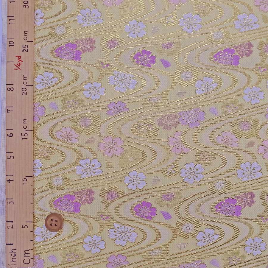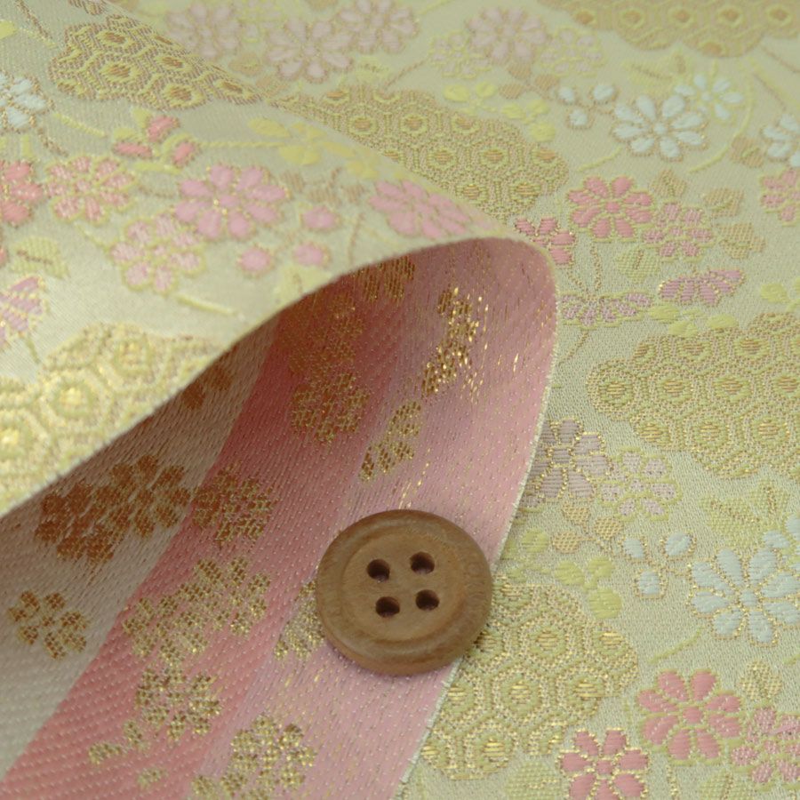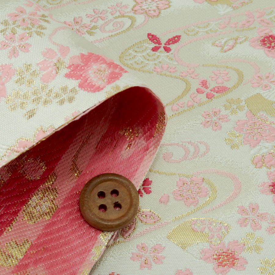 他の画像を見る かわいい色柄の西陣織きんらん 金襴生地(金らん) 流水に夜桜と蝶(アイボリー/ピンク) 10cm単位 切り売り 販売価格 ¥ 385 税込 在庫切れ 再入荷お知らせ お気に入りに登録する