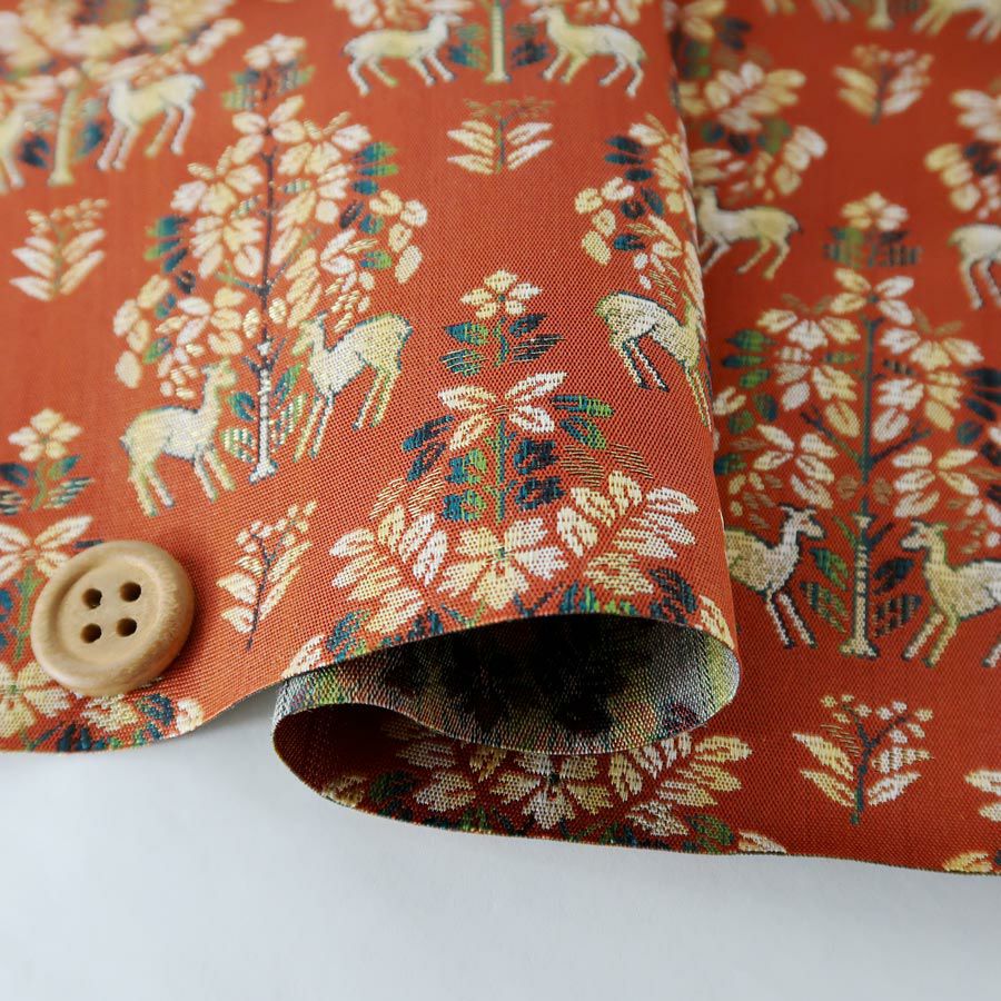 西陣織裂地・鹿草木夾纈(丹色) 10cm単位 切り売り