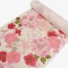 商品案内やさしい色のおしゃれな花柄を、和服用と同じ小幅の反物生地に染め上げました。七五三の着物作りにおすすめです。
