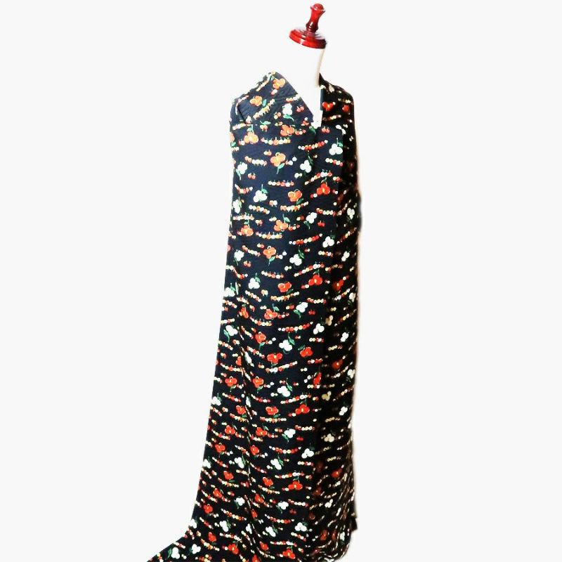 七五三の着物に♪ 紫地に華やかな柄 在庫限り/ 小幅ポリ京友禅 桜に梅(紫) 10cm単位 切り売り