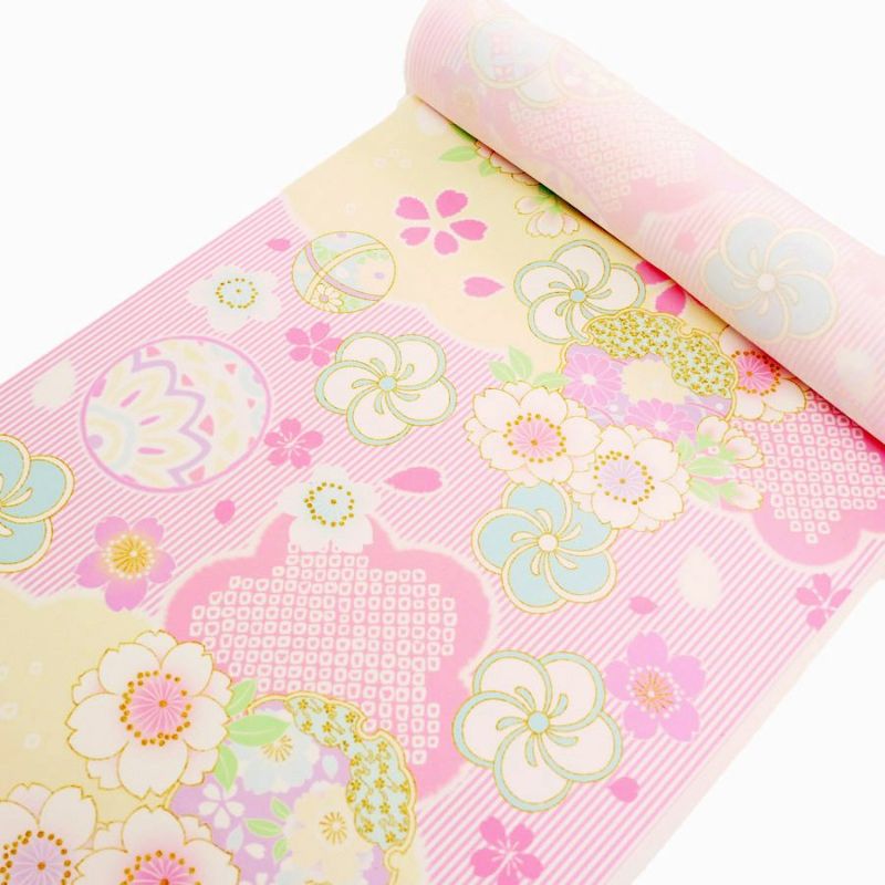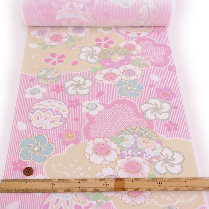 七五三のお着物にもおすすめ♪ ポリちりめん・桜結び(白) 10cm単位 切り売り