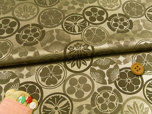 しぶいゴールドでシブク目立つ生地 ジャカード家紋尽くし(金) 10cm単位 切り売り