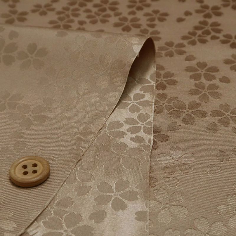 インテリアから衣装まで! ポリエステル生地 W巾 サテンジャカード 桜模様(アイボリー) 10cm単位 切り売り