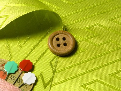 無地りんず60cm幅(笹模様・黄緑) 10cm単位 切り売り