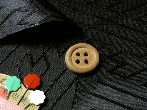 ジャカード家紋尽くし(メタリックブラック) 10cm単位 切り売り