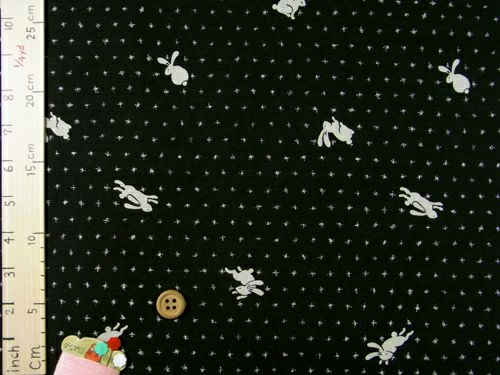 手染め和風コットン生地・匠 かすりにうさぎ(黒)
