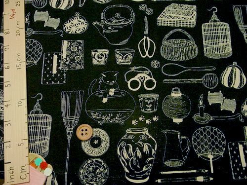 昔懐かしい柄* 和風コットン生地・匠 日本の伝統調度品(紺) 10cm単位 切り売り
