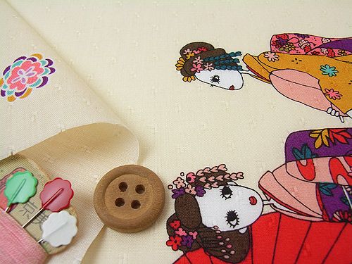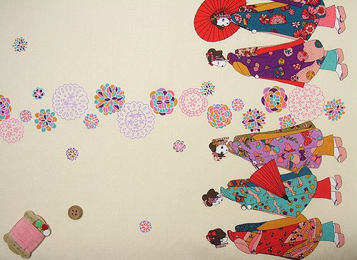 待望の再入荷☆ 和風コットン生地・舞妓さんのおでかけ(アイボリー) 10cm単位 切り売り