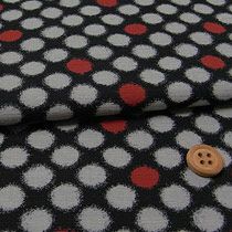 コットン生地 点描に猫の日常(パールグレー/赤) 10cm単位 切り売り