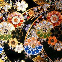 金襴生地(金らん) 流水に八弁花(黒) 10cm単位 切り売り