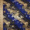 モダンな柄と色使いの伝統柄 金襴生地(金らん)斜取り扇面桜(黒/青) 10cm単位 切り売り